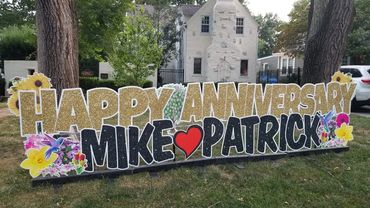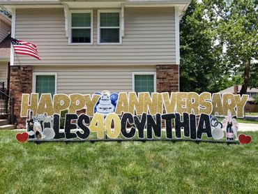 Commemorate your special day—whether it’s 1 year or 50 years—with a stunning and unique Anniversary Yard Prop from Yard Props KC! Our personalized yard signs are the perfect way to surprise your spouse, delight your parents, or honor a beloved couple in the Kansas City metro area.