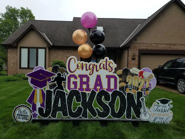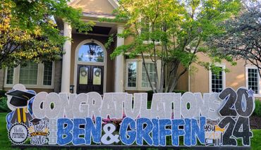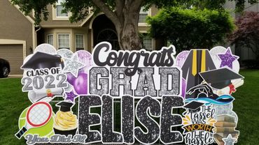 Order your graduation yard signs online and have them delivered & set up right in your yard or even indors! Our easy setup service will have you ready to go in no time. Plus, we pick up that evening to give you a no hassle graduation celebration like no other!