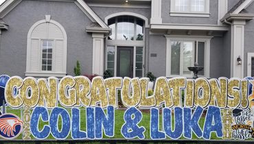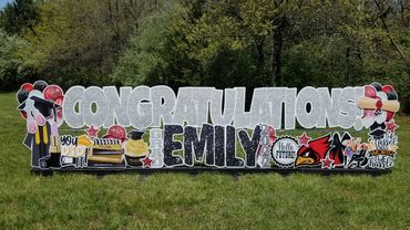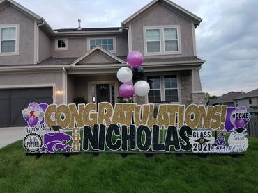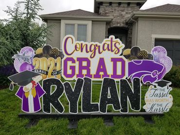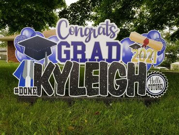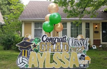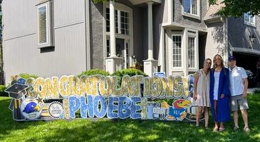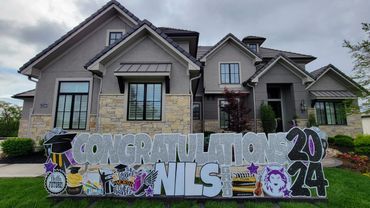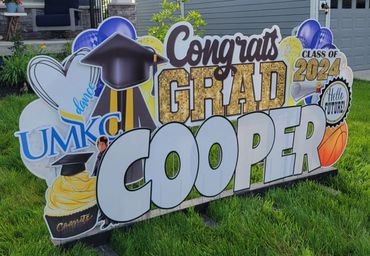 Our graduation yard signs are made with top-quality materials that are weather-resistant and built to look great from set up to pick up. Keep the memories alive by displaying your grad sign for everyone to see! Service outside of Raymore Mo available.